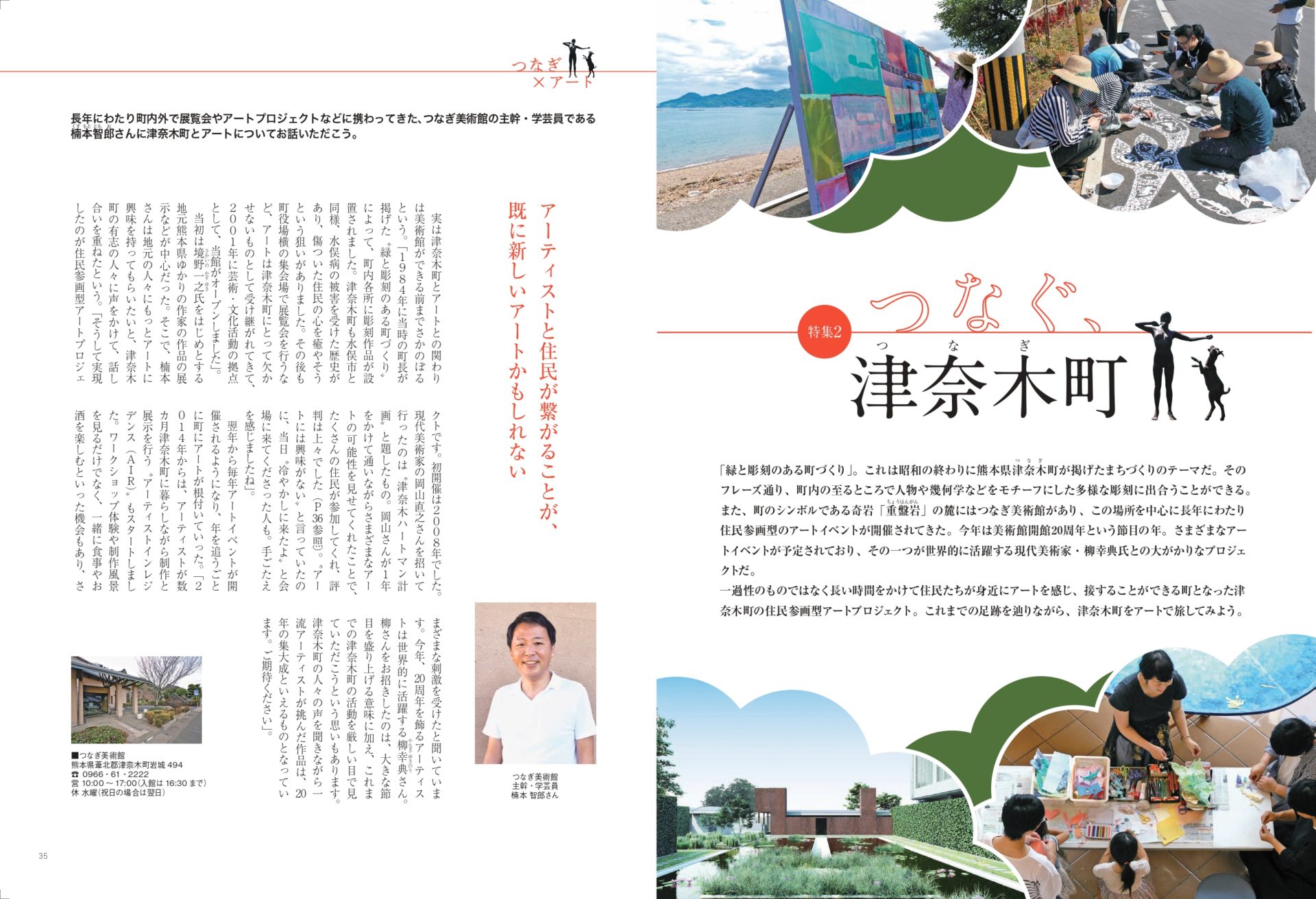 水俣・芦北観光応援社事業2022.01.11「九州王国」2021年11月号に掲載されました。「九州王国」2021年11月号に、津奈木町のアートプロジェクトが特集されました。 九州王国 2021年11月号 「つなぐ、津奈木町」 (PDF)