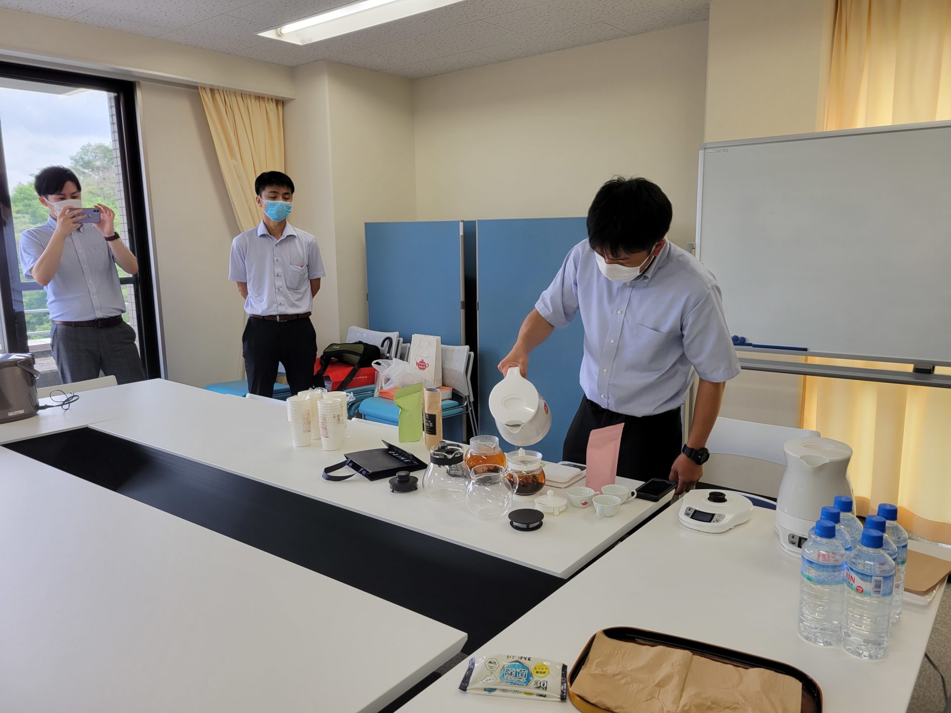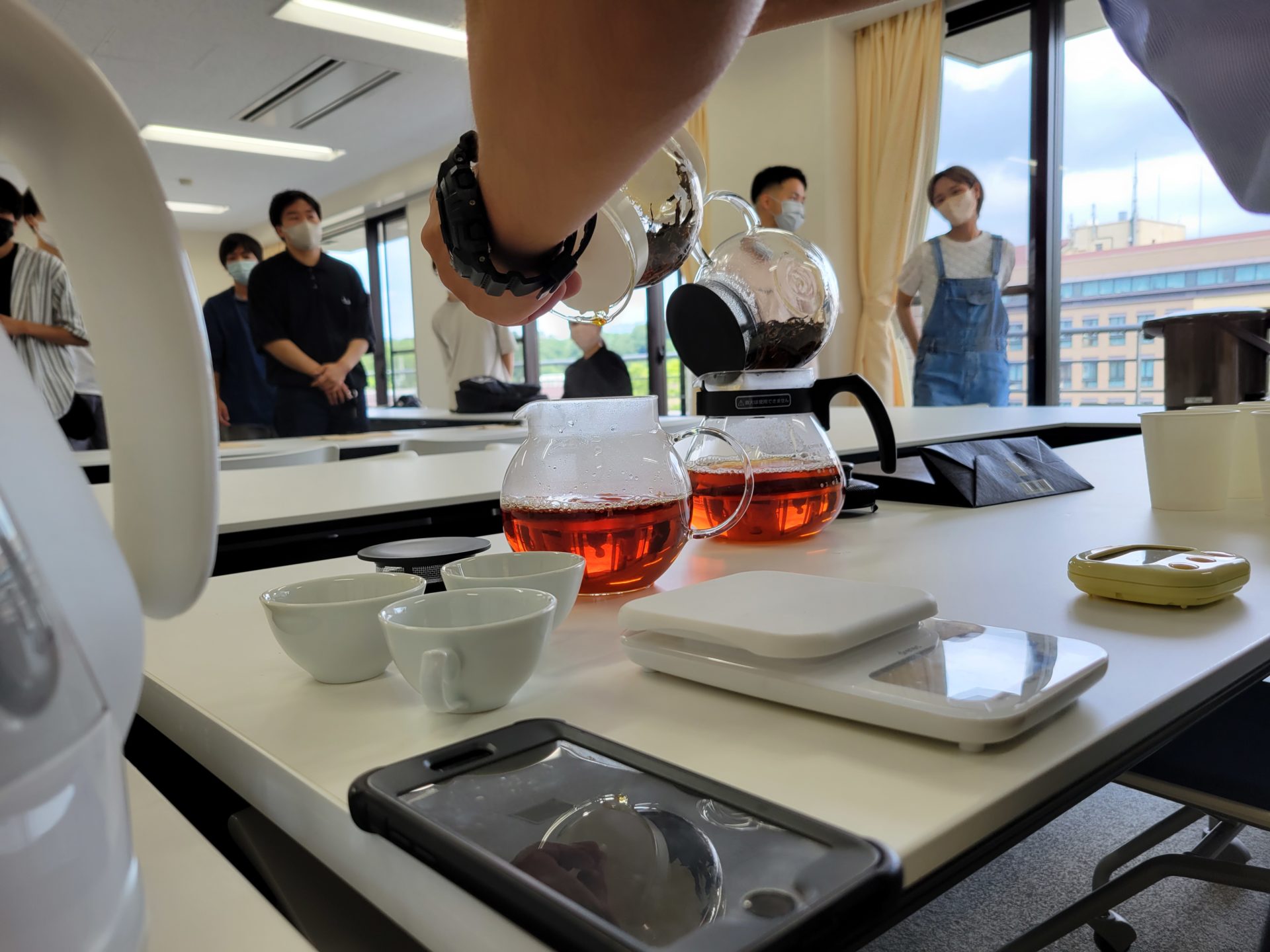 紅茶のおいしい淹れ方やこだわりなど、和紅茶の魅力を実践を通して学生らへ伝えました。