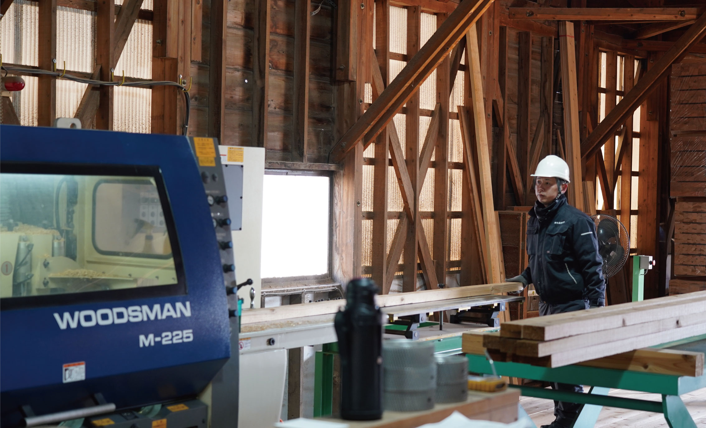 地産地消が大事という思いから、地域材を中心に使用して製品を製造していますが、良い木材が入らない場合は、地域材以外の木材を使用する場合もあります。そんな中でも、品質やサービス面に重きを置き、地域との繋がりを大事にし、地元の大工さんや工務店のプロ集団でお客様の家づくりに協力できるよう務めています。